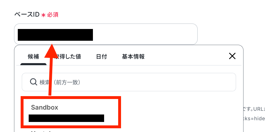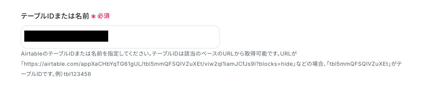 レコードを作成する先のベースIDを選択し、テーブルIDをAirtable上で確認して記入してください。