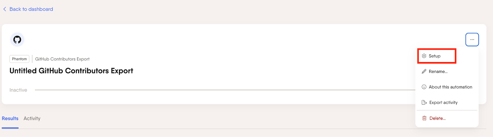 対象のPhantomからSetupをクリックして、設定を開始します。