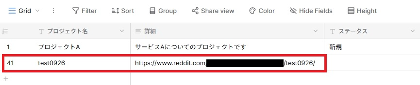 Redditでキーワードにマッチする投稿が行われたら、BaserowにProject Rowを作成する