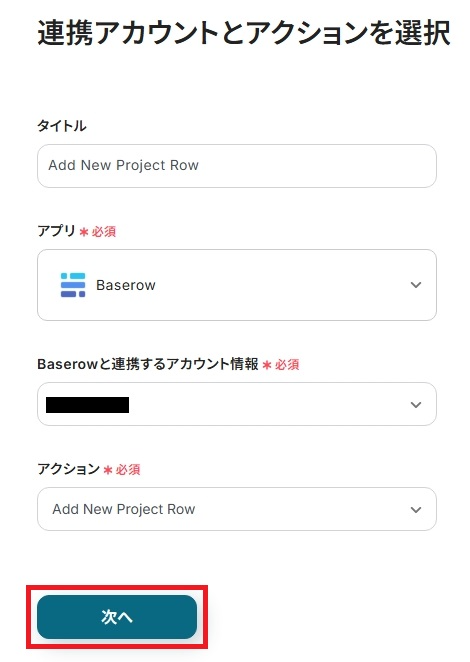 Jotformの内容をもとにBaserowにプロジェクトを追加する