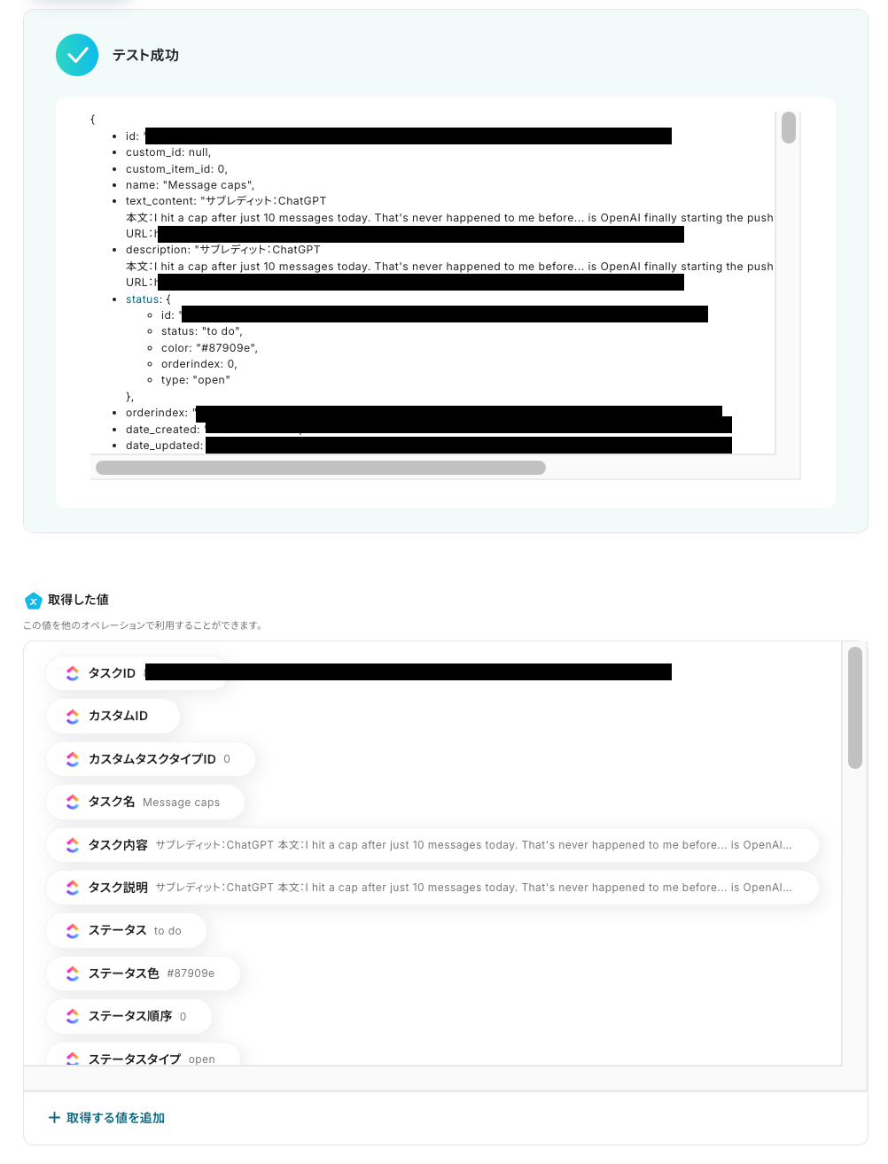 このワークフローを活用することで、Redditに新しい投稿があった際に、自動でClickUpへタスクを作成する一連の流れを構築できます。
