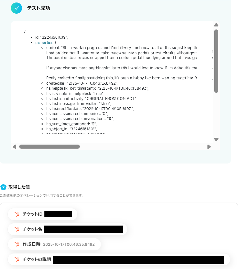 ここまで設定したらテストボタンを押しましょう。テストが成功し、取得した値が入ればOKです。