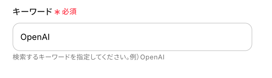 今回はテスト用の投稿に合わせて「OpenAI」というキーワードにしました。