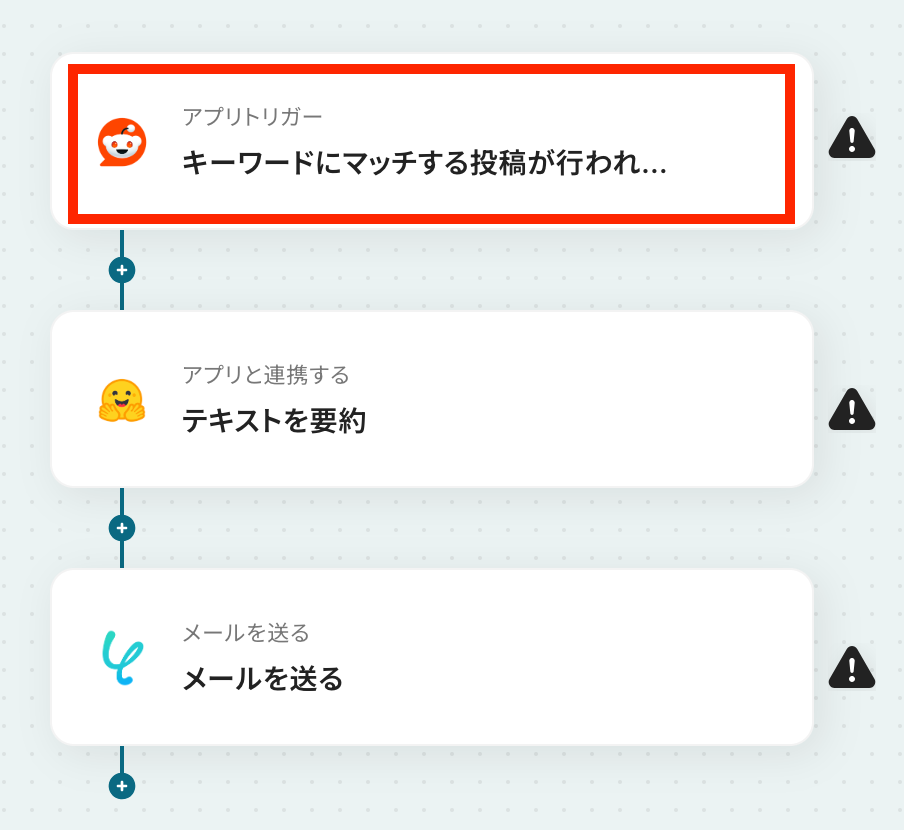 今回は「Redditでキーワードにマッチする投稿が行われたら、Hugging Faceで要約してメールで通知する」フローを作成していきます!