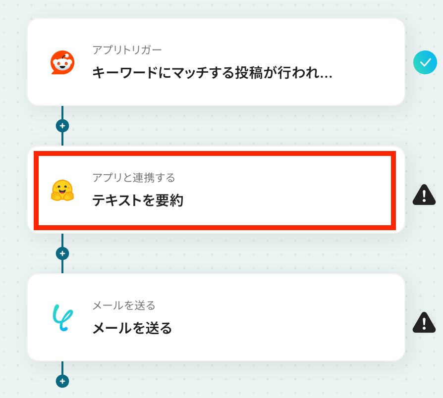 Hugging Faceで内容を要約するアクションを設定していきましょう。