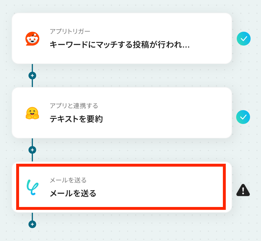 - Redditのトリガー設定およびHugging Faceとメールのアクション設定