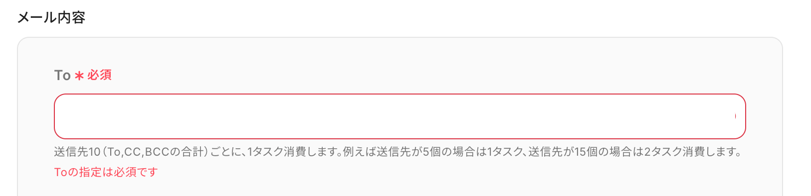 「To」は、入力欄をクリックし、「メールアドレス」を入力してください。