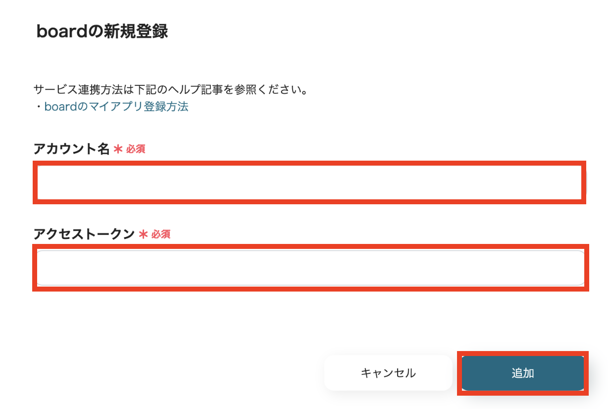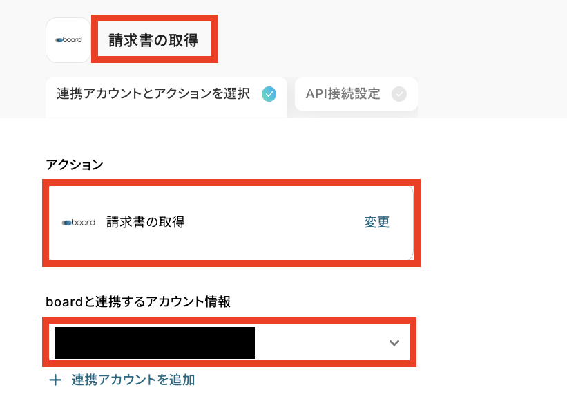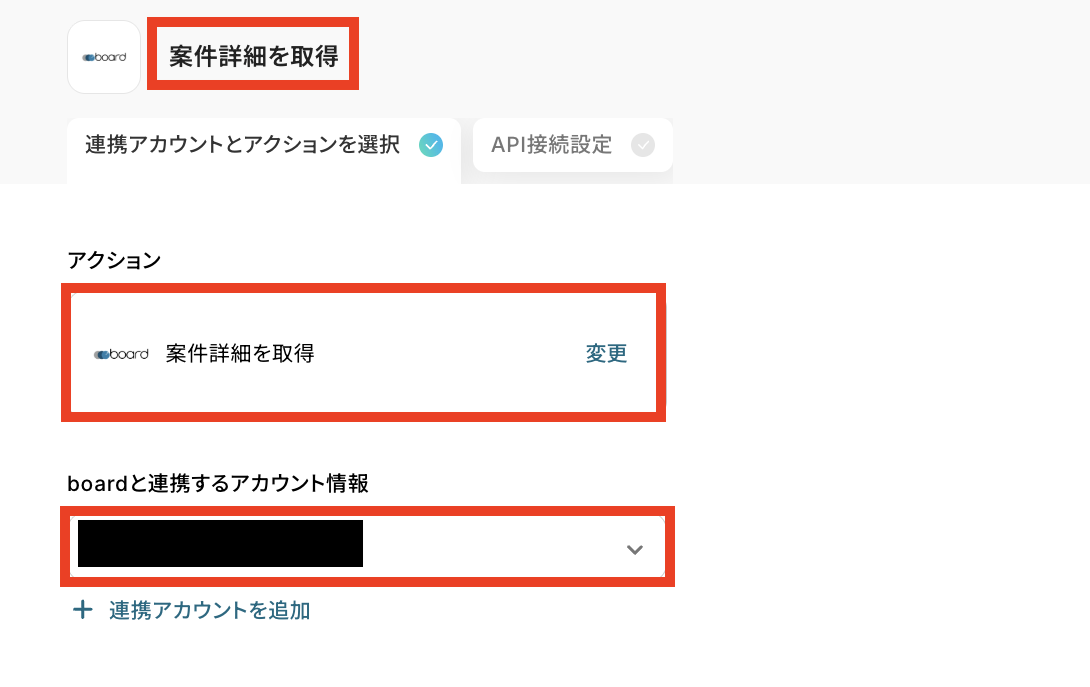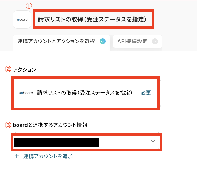 ③boardと連携するアカウント情報:ステップ1で連携したアカウントが表示されます。