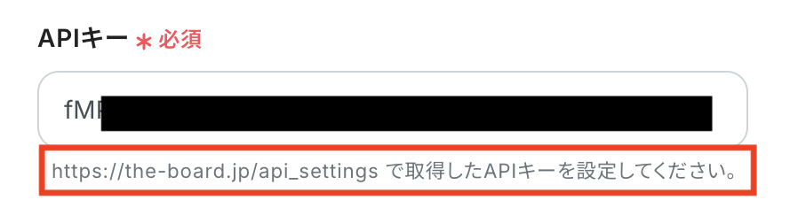 - boardとの連携設定を行う際に、ご利用の環境に応じた任意のAPIキーを設定してください。