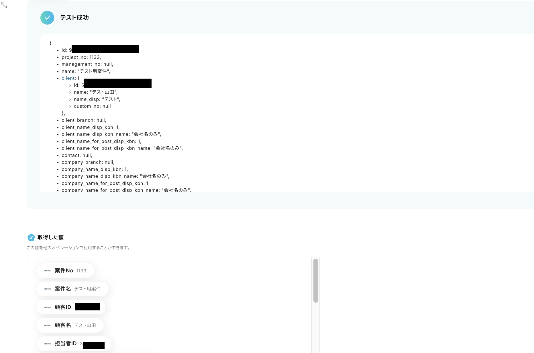 ステップ4で指定した条件に合致する案件が一覧として取得できたので、ステップ5では1件ごとのIDデータを取得するための設定をしていきます!