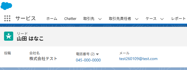 まずは事前準備として、Salesforceに移動してテスト用に新しいリードを登録 してください。