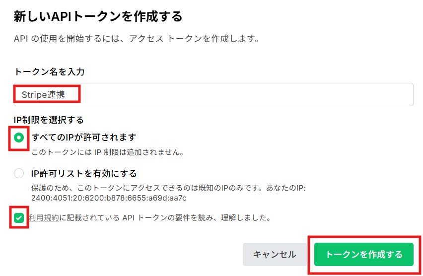 以下の情報を入力し、「トークンを作成する」をクリックしてください。