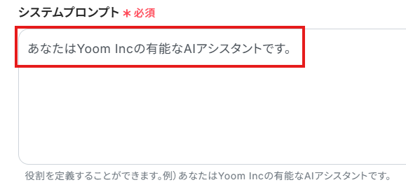 「システムプロンプト」は、役割を定義することができます。 今回は、テンプレートの内容のままにしました。