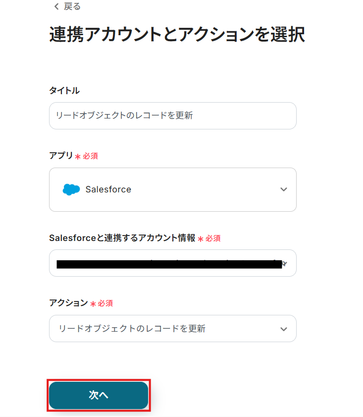 1.アプリと連携する「リードオブジェクトのレコードを更新 」をクリックしましょう。