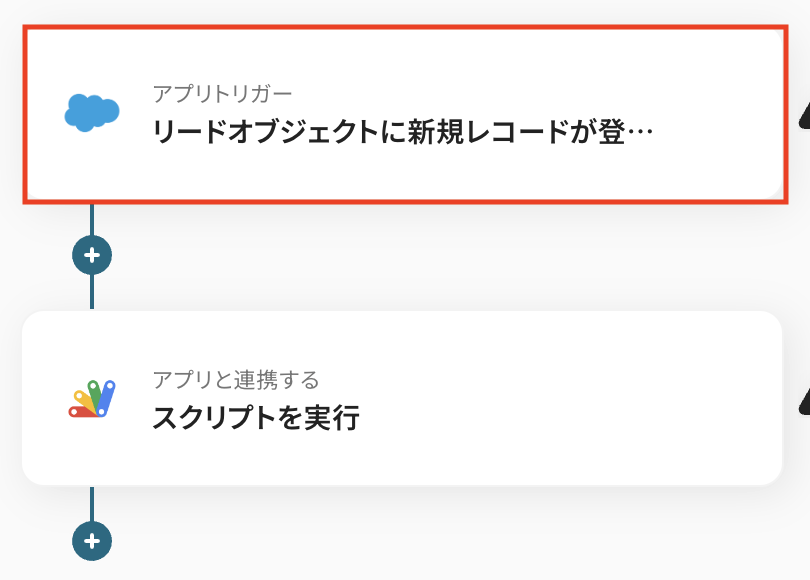 このワークフローを活用すれば、Salesforceに特定の条件でリードが登録された際に、Google Apps Scriptのスクリプトを自動で実行させることが可能になり、SalesforceとGoogle Apps Scriptを連携させた一連の業務を効率化します。