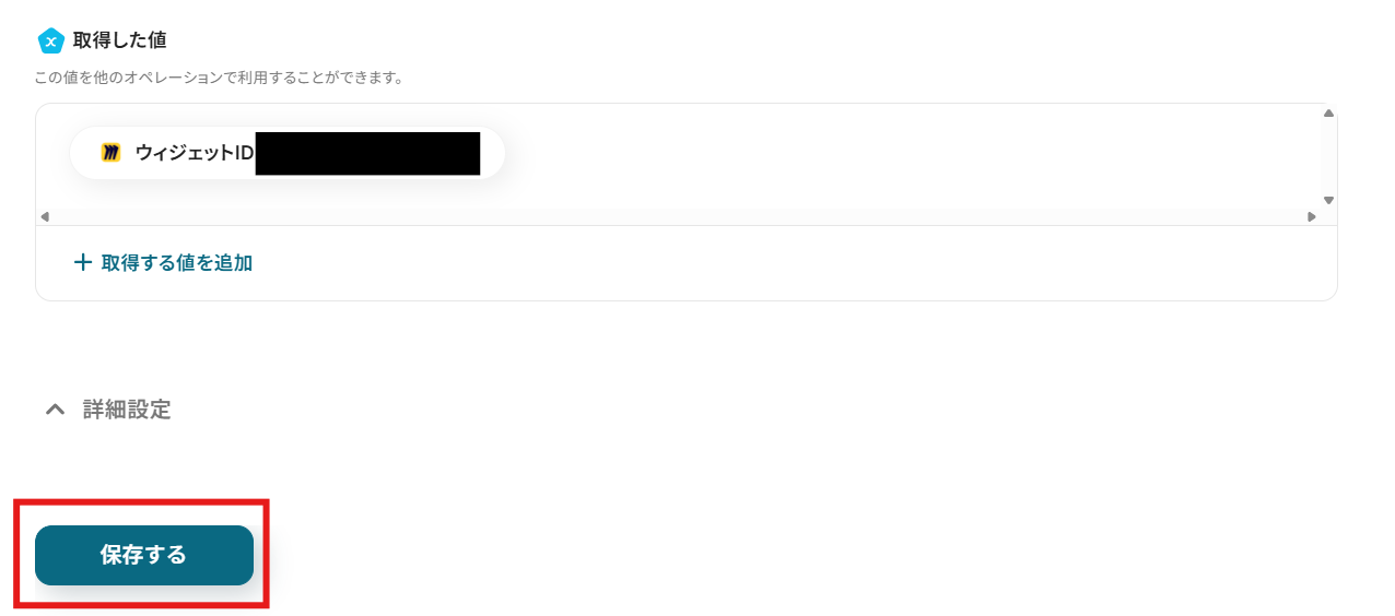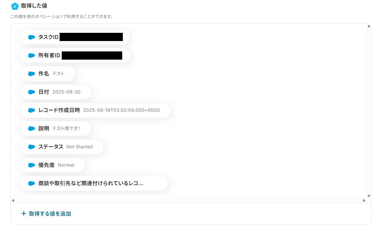 テストに成功すると「取得した値」に反映されます。