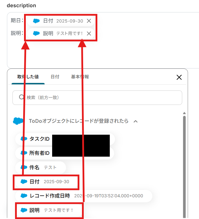- 作成するMiroカードのタイトルや説明文に、SalesforceのToDoから取得したどの情報を反映させるかを自由に設定できます。