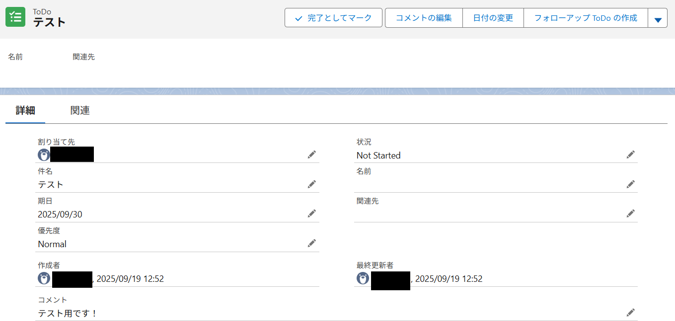 SalesforceでToDoオブジェクトにレコードがない方は、このタイミングで登録しましょう。