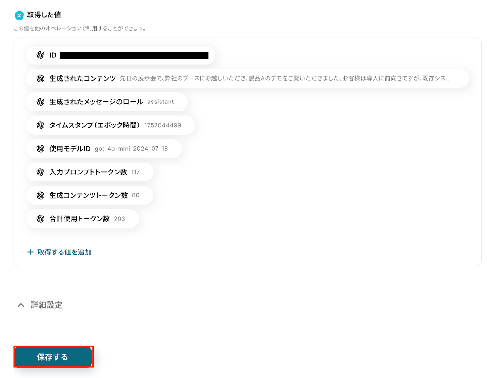 取得した値は、後続の設定で活用できます!