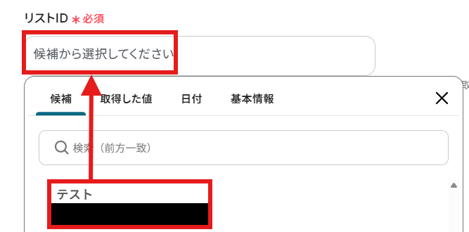 「リストID」を候補から選択しましょう。