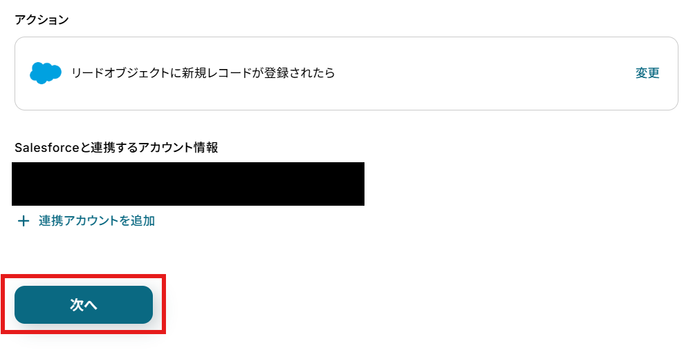 ステップ3:Salesforceでリードオブジェクトに新規レコードが登録されたら