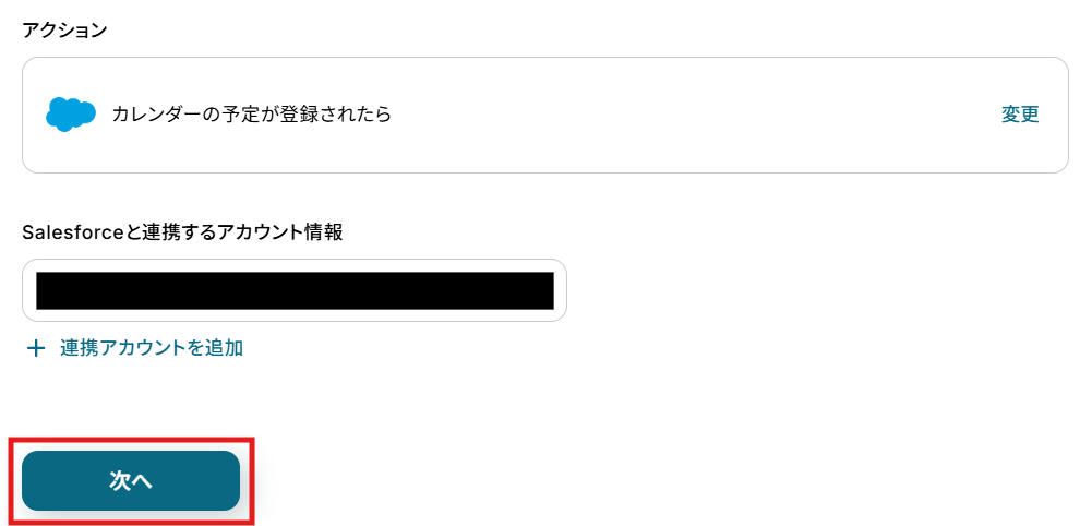 アクションは、「カレンダーの予定が登録されたら」のままで次に進みましょう!