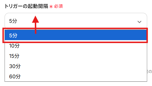・トリガーは5分、10分、15分、30分、60分の間隔で起動間隔を選択できます。