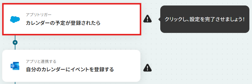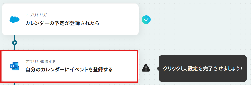 次に、Salesforceで登録したカレンダーの予定をもとに、Outlookのカレンダーに登録する設定を行います。