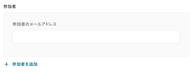 フローボット設定画面で「自分のカレンダーにイベントを登録する」オペレーションを設定する際に、「参加者」のメールアドレスを追加することで、チームメンバーのOutlookカレンダーにも連携することができます。