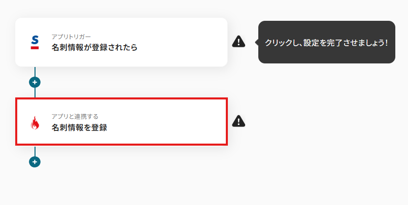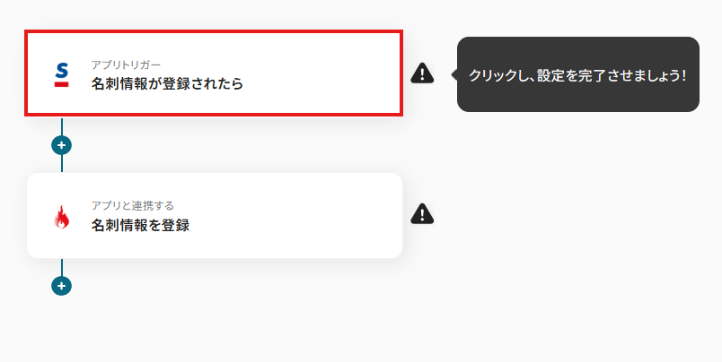 先ほどの画面で「OK」をクリックして、表示された画面のアプリトリガー「名刺情報が登録されたら」をクリックしましょう。