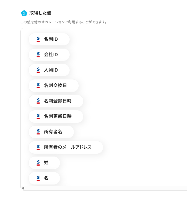 取得した値は、後続のオペレーション設定時の値としてご利用いただくことができ、フローボットを起動する度に、変動した値となります。