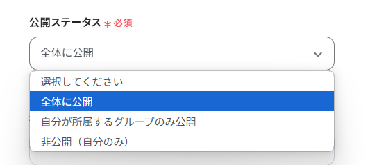 「ステータス」は、入力欄をクリックして表示される候補から選択してください。