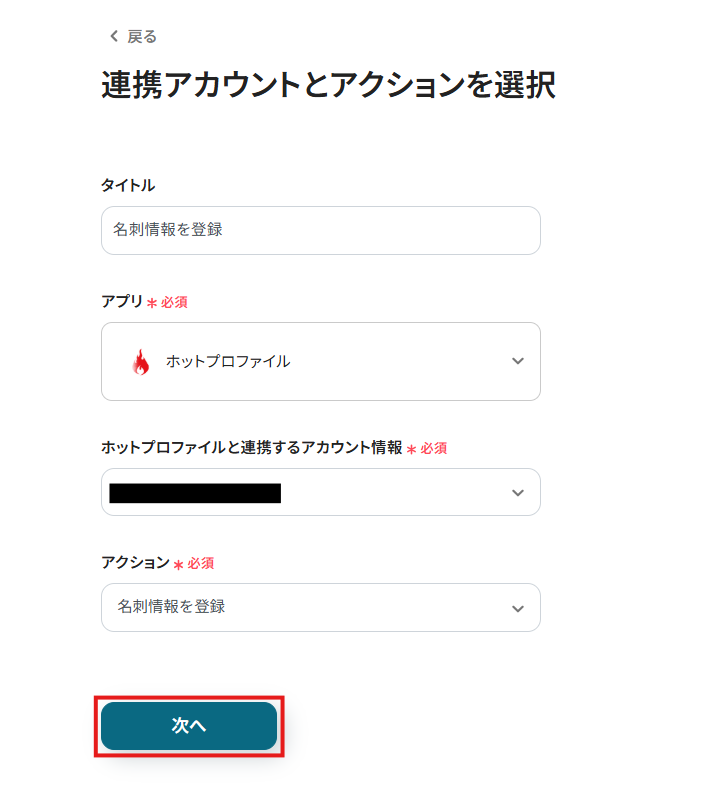 連携するアカウント情報には、ステップ1で連携したアカウント情報が反映されています。