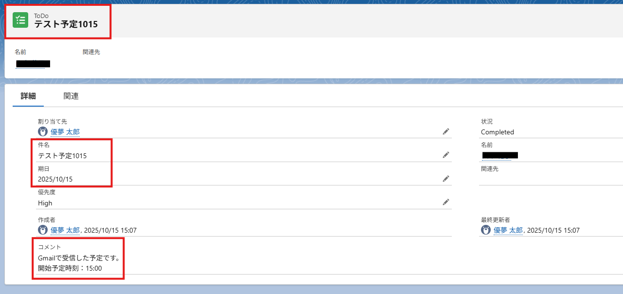 Gmailで受信した予定を、Salesforceに活動履歴として登録する