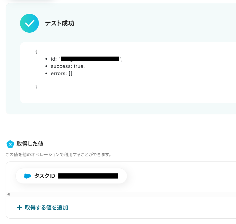 5.入力を終えたら「テスト」をクリックし、「取得した値」にデータが抽出されていることを確認してください。