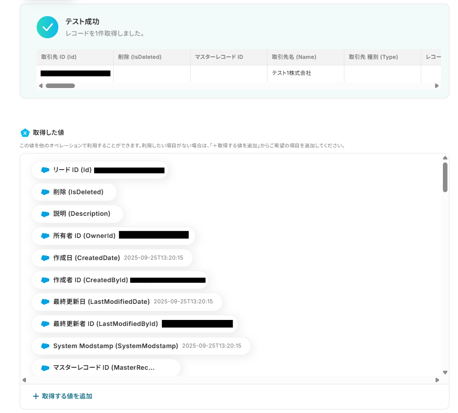 実際にSalesforceにデータが追加されることを確認してください。確認後、保存しましょう。