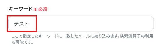 ここで設定したキーワードに一致したメールを受信したらフローボットを起動します。