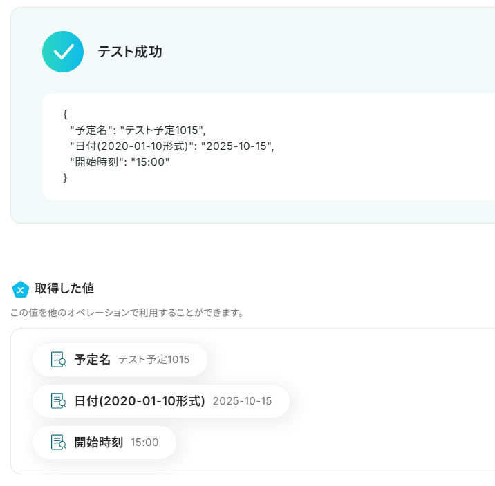 入力が完了したら「テスト」を実行し、正しくデータが抽出されていることを確認しましょう。