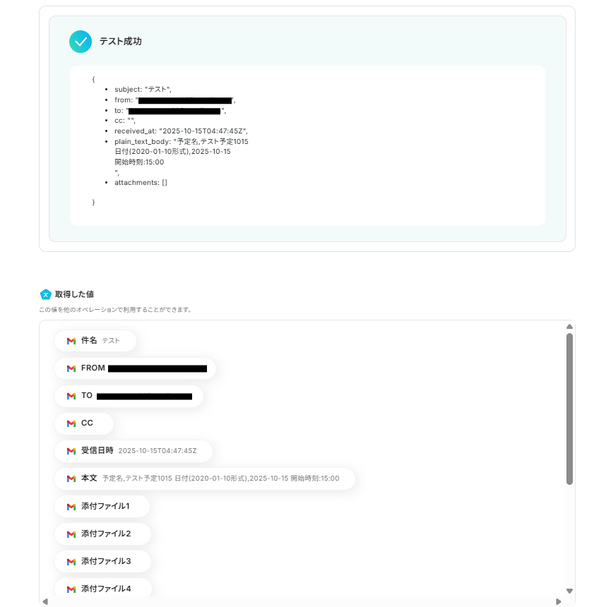 ※後続のGmailのトリガー設定時のテストで必要になります。