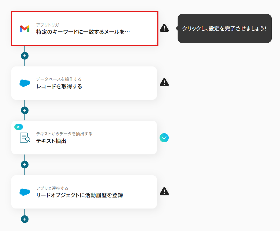 それではここから代表的な例として、Gmailで特定の条件のメールを受信した際に、Salesforceに活動履歴として自動で登録するフローを解説していきます!