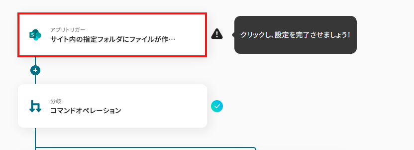 1.「サイト内の指定フォルダにファイルが作成または更新されたら」をクリック