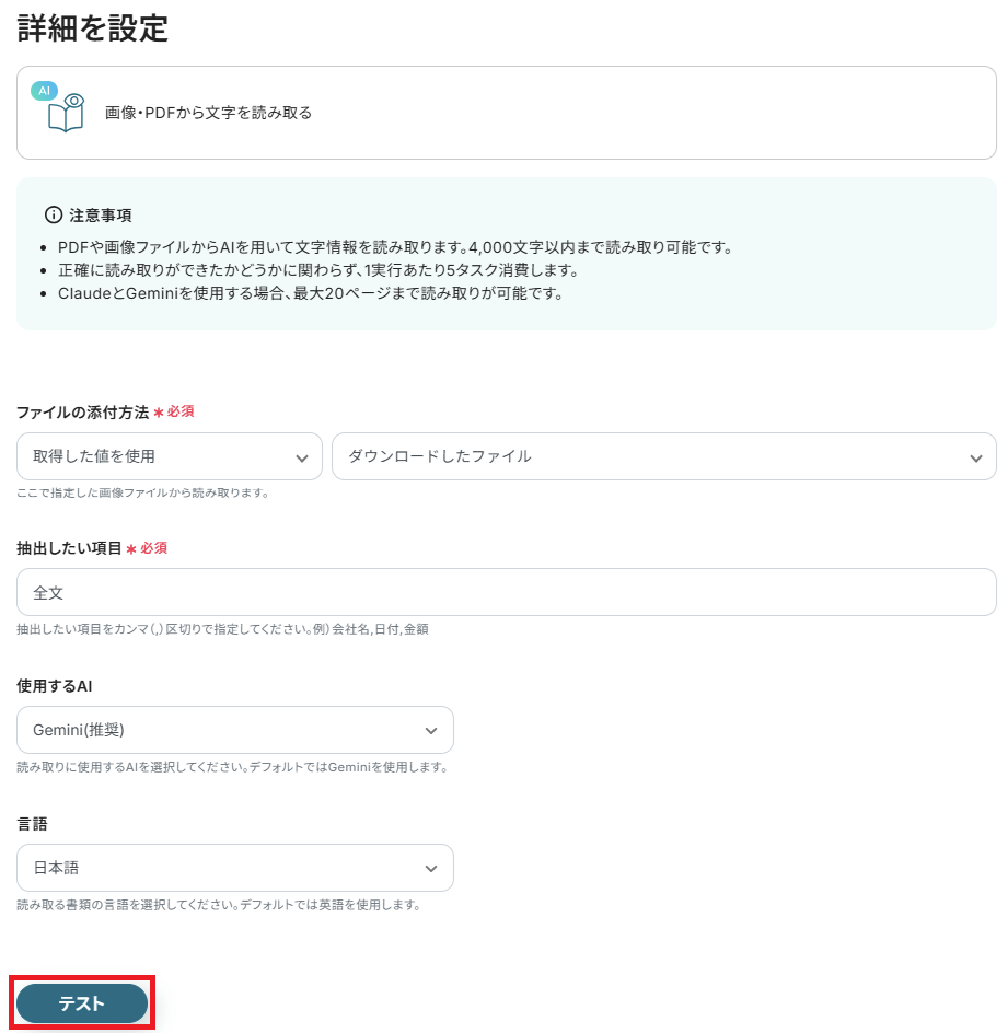 ステップ6:「画像・PDFから文字を読み取る」の設定