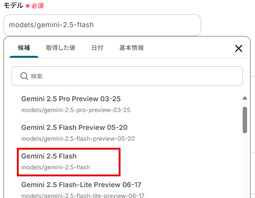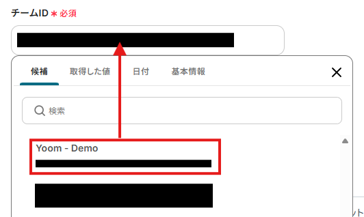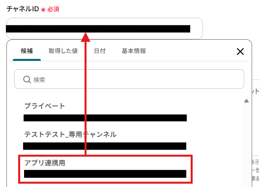 フォルダID:候補から先ほど作成したフォルダを指定していきます