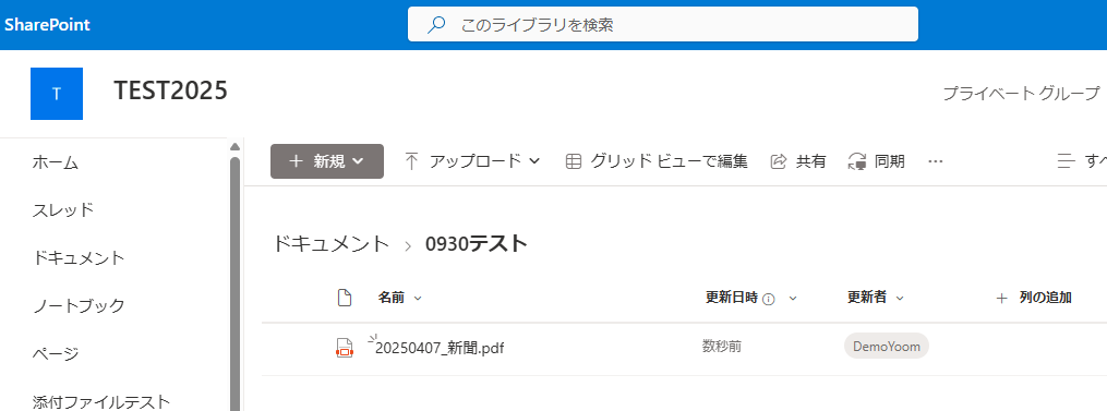 3.Microsoft SharePointにフォルダを作成してファイルをアップロードします
