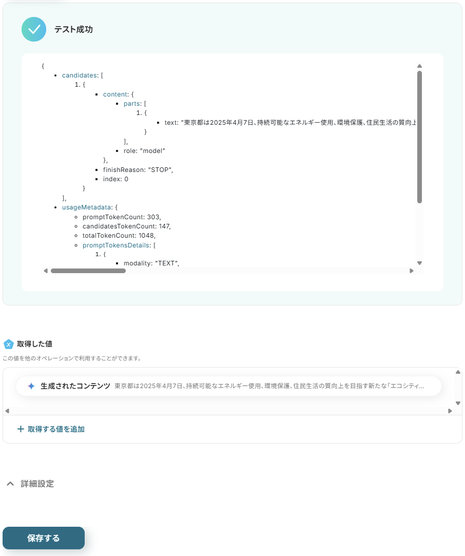 Notionのトリガー設定では、自動化の対象としたいデータソースのIDを任意で設定してくださいこれにより、特定のデータソースのみを監視対象とすることが可能です Geminiのオペレーションでは、使用するモデルを任意で設定できるほか、プロンプトやシステムプロンプトを自由にカスタマイズすることで、要約の文字数や形式などを調整できます ■注意事項
