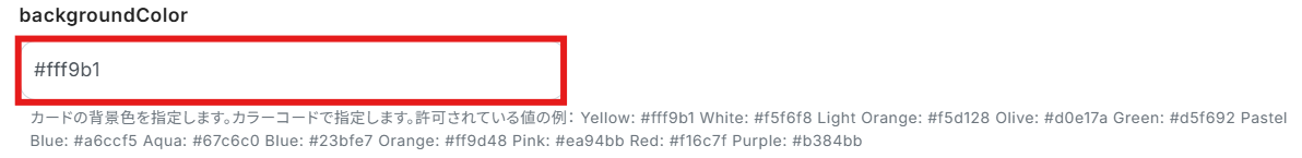 「backgroundColor」を「Yellow: #fff9b1」で設定しました!