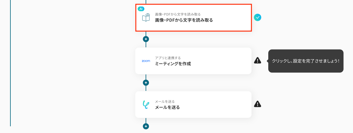 ダウンロードしたファイルから文字を読み取るための設定をします。 四つ目のオペレーションにある、「画像・PDFから文字を読み取る」をクリックしてください。