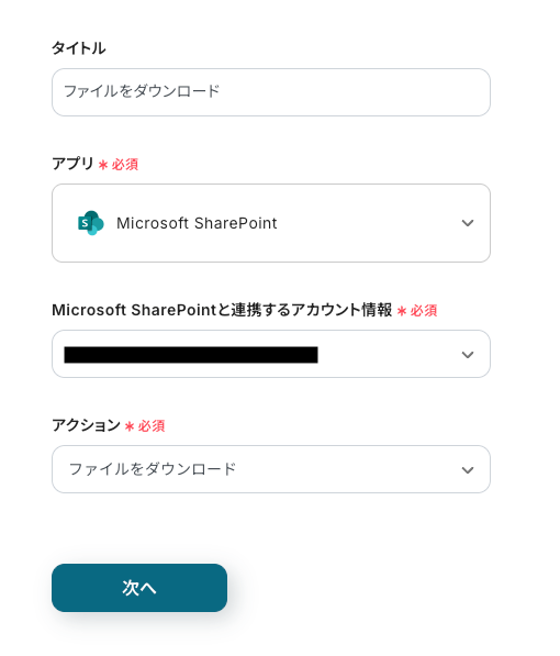 ステップ5:Microsoft SharePointのファイルのダウンロード設定