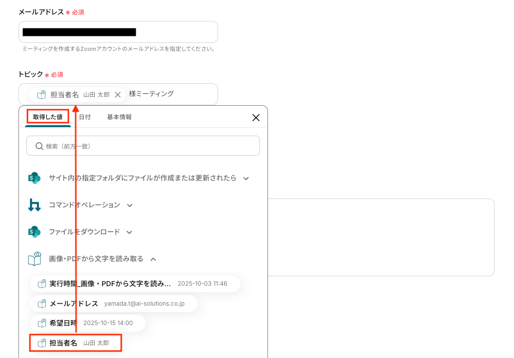 Microsoft SharePointでアップロードされたファイルをOCRで読み取り、Zoomでミーティングを作成する