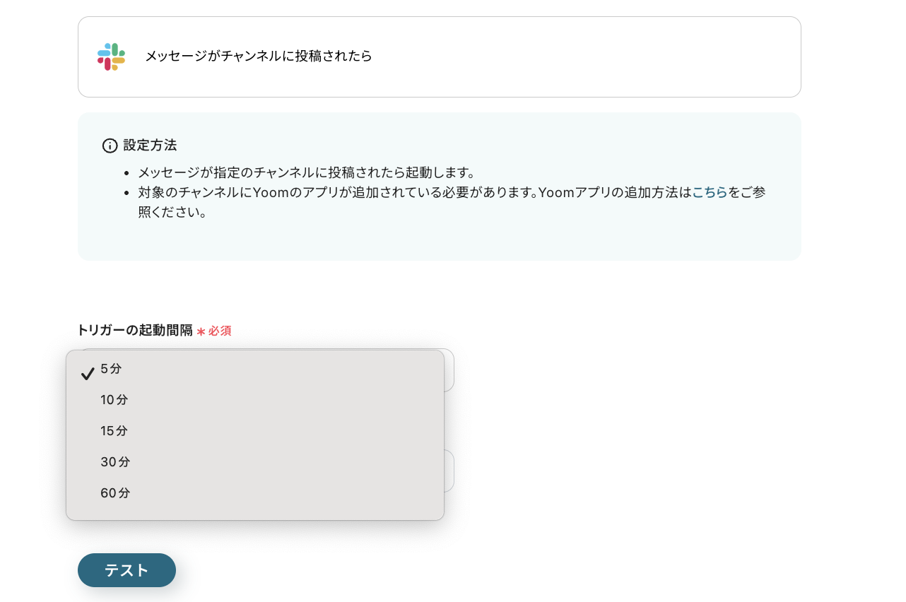 ・トリガーは5分、10分、15分、30分、60分の間隔で起動間隔を選択できます。